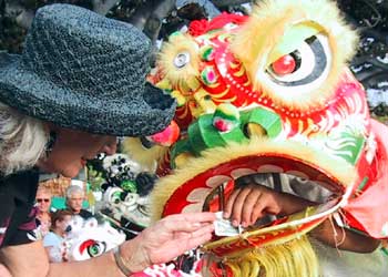 The lions danced. It is customary to feed the lion.