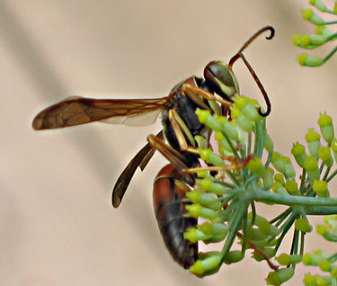 Still hot. Today's wildlife photograph is a wasp on my fennel plants.