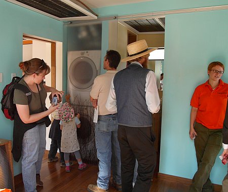 Went down to the Mall today to see the Solar Decathlon. Colleges build small 100% solar powered houses. They compete in various events. Events like washing and drying towels, and seeing how many miles they can get on their electric cars. They have to generate enough electricity to run a small street legal electric car. As well as all the normal house stuff. Read about it and look at the pictures. Solar Decathlon
